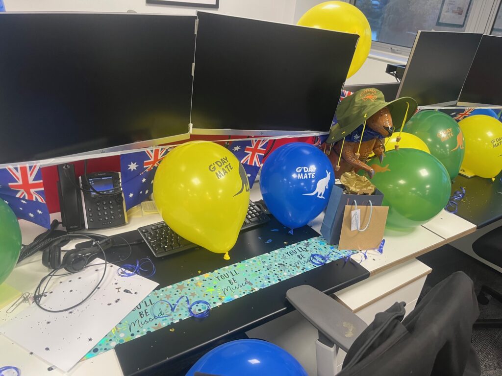 Work gave me a lovely little send off with some Aussie themed desk decorations and lunch. Will miss a lot of the finance team and look forward to catching up when finally returning. Obviously getting a game of darts in.